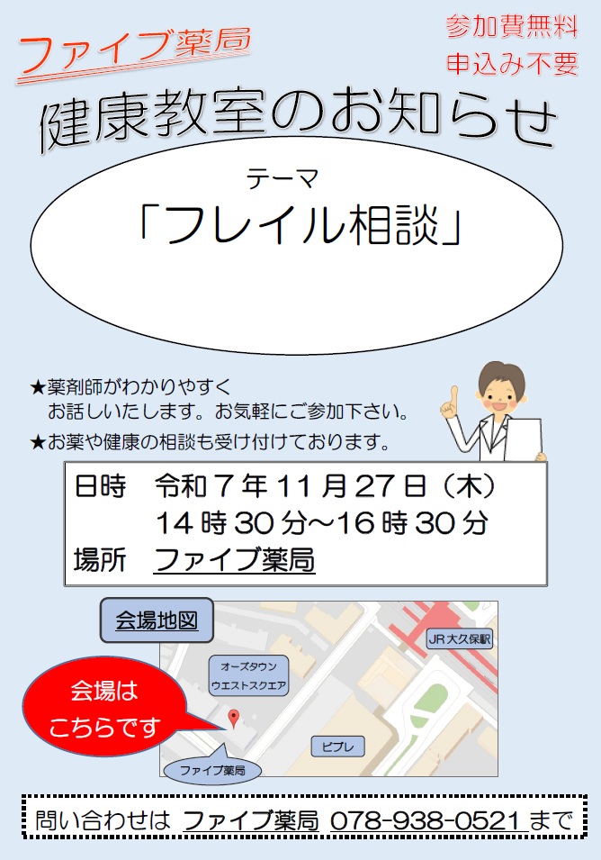 令和7年11月27日ファイブ薬局にて健康教室を開催致します。